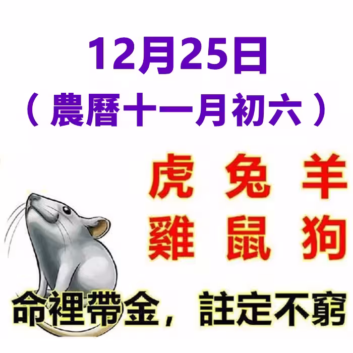 12月25日(農曆十一月初六)生肖運勢_虎、兔、羊大吉
