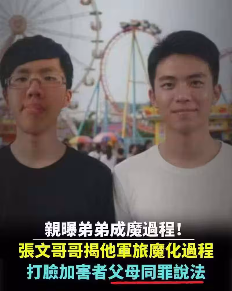 親曝弟弟成魔過程!張文哥哥揭他軍旅魔化過程, 打臉加害者父母同罪說法!
