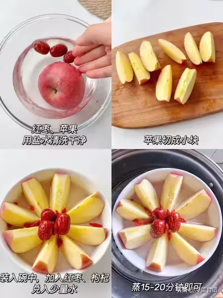 友情提示:蒸蘋果時要連果皮一起,蘋果皮具有開wei的作用,蘋果皮的含鐵量是其果肉的20多倍。