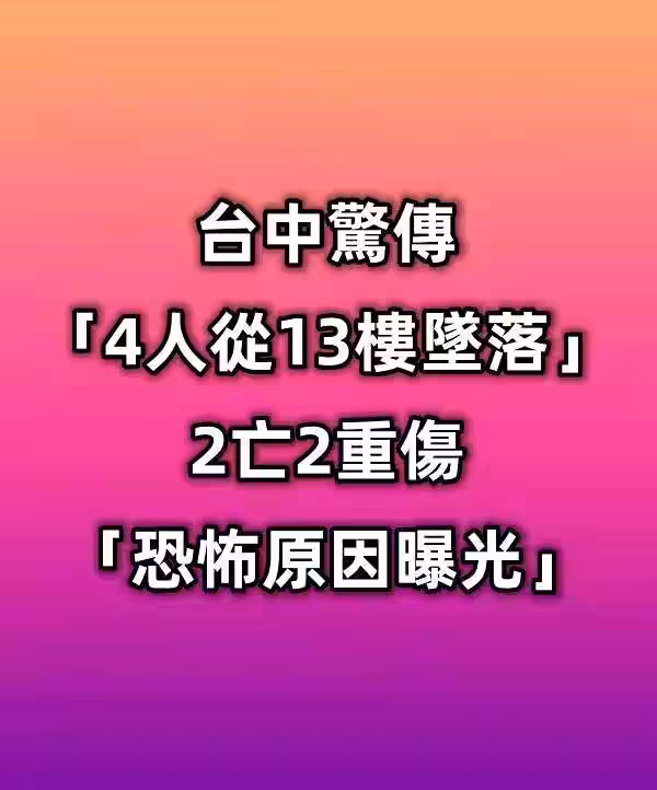 突發/台中驚傳「4人從13樓墜落」!2亡2重傷「恐怖原因曝光」