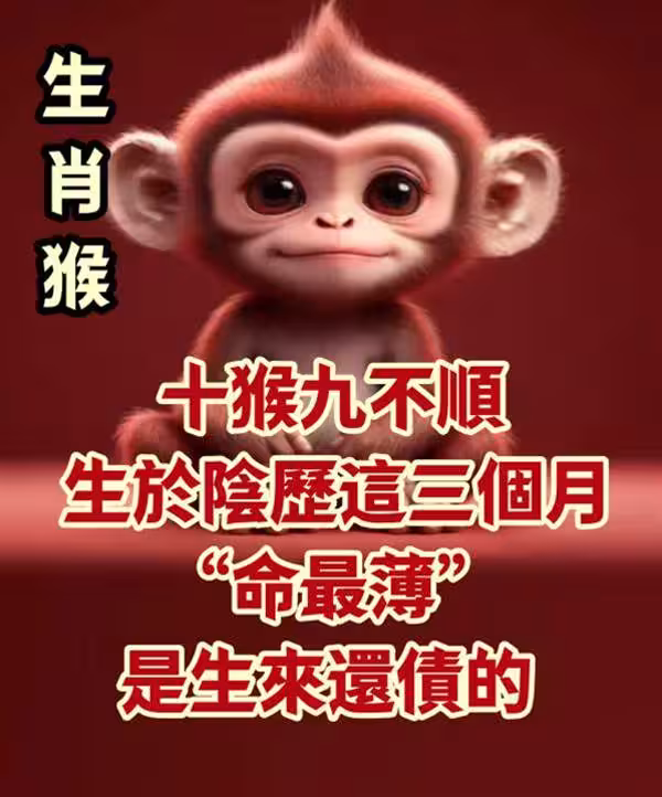 生肖猴:十猴九不順,生於陰曆這三個月「 命最薄 」,是生來還債的