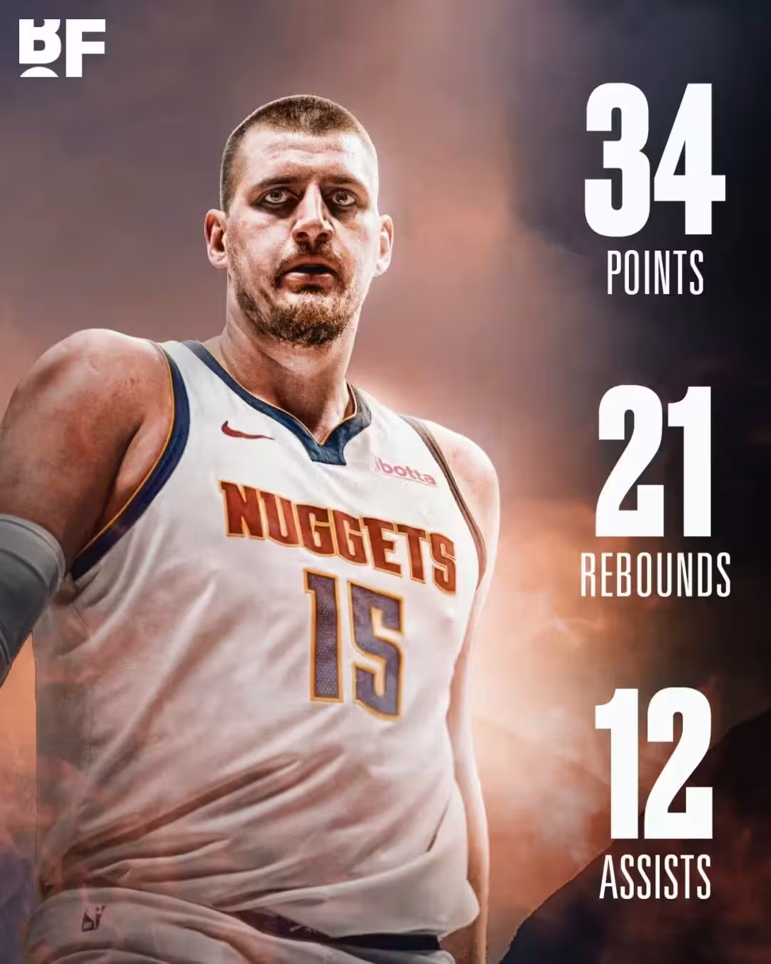 第四節,約基奇依然無解,單節拿下13分4籃板2助攻,掘金本場最後的14分當中,全部都是由約基奇直接或者助攻得到。