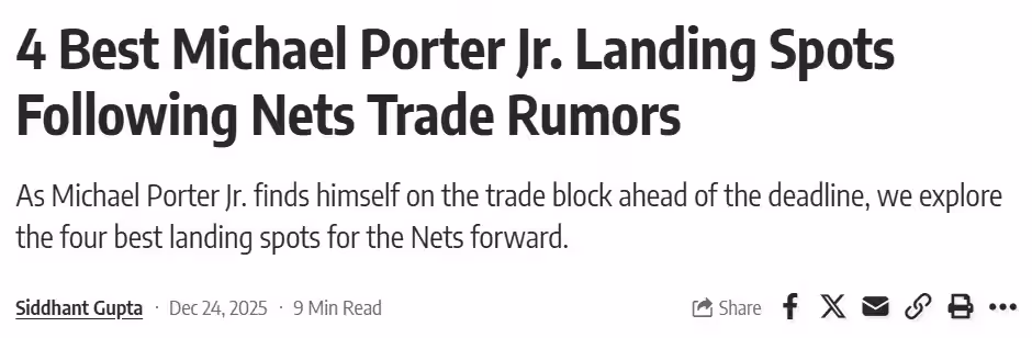 《Fadeaway World》的記者Siddhant Gupta模擬了一筆頗具潛在價值的交易。在這一設想的交易框架下,金州勇士隊將獲得麥可·波特二世;而布魯克林籃網隊則會得到喬納森·庫明加、摩西·穆迪、吉·桑托斯以及2027年首輪選秀權。從多個維度審視,這筆交易對於參與其中的兩支球隊來說,均不失為具有廣闊前景的明智之選。知名記者Chris Haynes曾透露,多支球隊預測庫明加會在交易截止日前被交易離隊。作為2021年首輪第7順位的新秀,庫明加與球隊主教練科爾關係不睦。倘若這筆模擬的交易最終達成,那麼對於交易雙方而言,都可謂是實現了雙贏的局面。