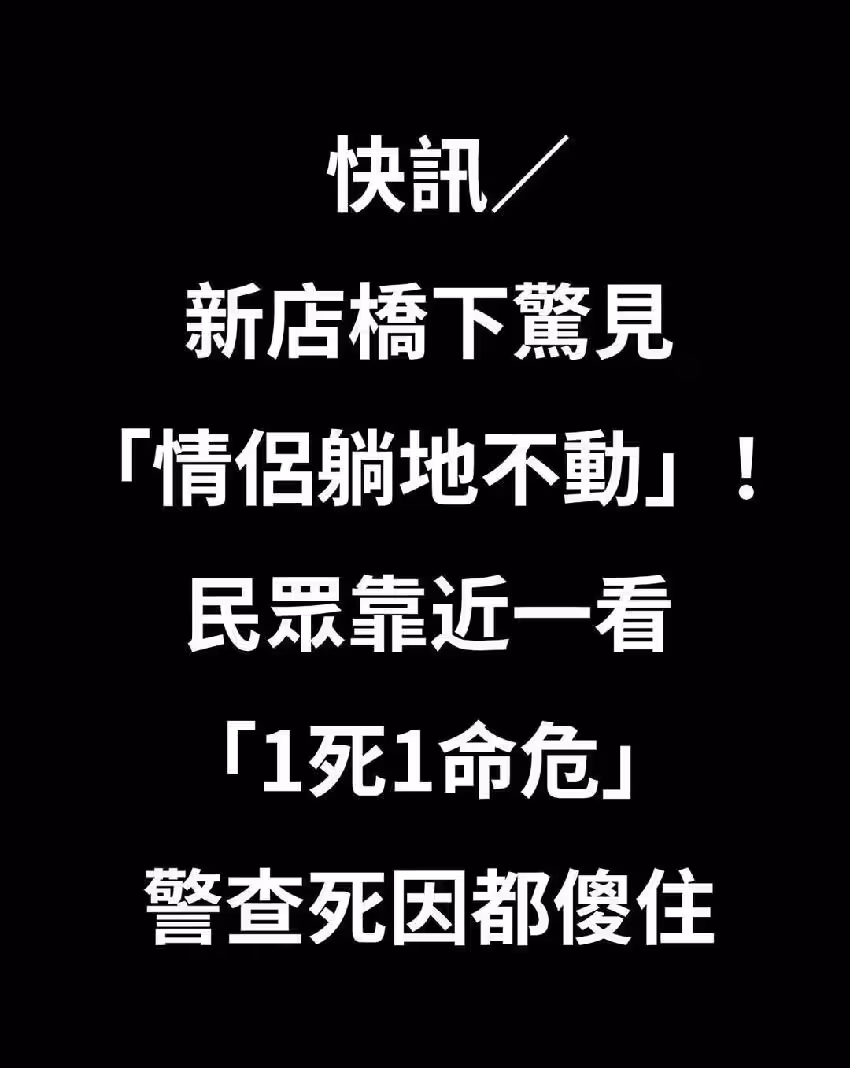 新店橋下驚見「情侶躺地不動」!民眾靠近一看「1死1命危」警查死因都傻住