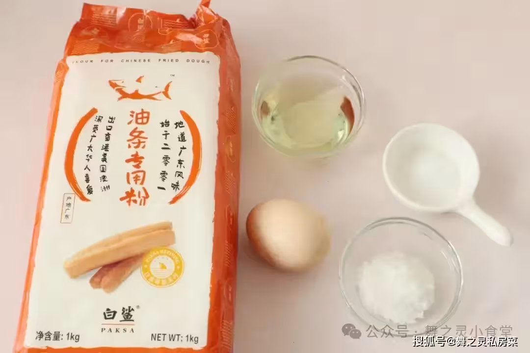 詳細步驟第一步:先把白鯊油條粉500克,水300克,糖10克混合,用筷子攪拌,注意第一個要點就是不能用手揉,用筷子攪拌,接著手上可以沾點油,混合後擂錘,然後蓋上鬆弛10分鐘。