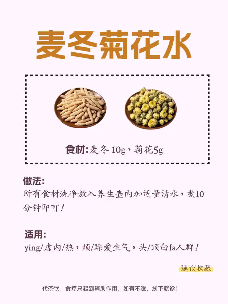 🔹 食材:麥冬 10g、菊花 5g