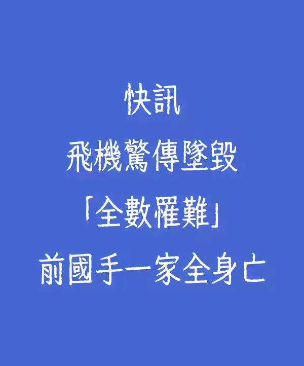 快訊/飛機驚傳墜毀「全數罹難」前國手一家全身亡!!
