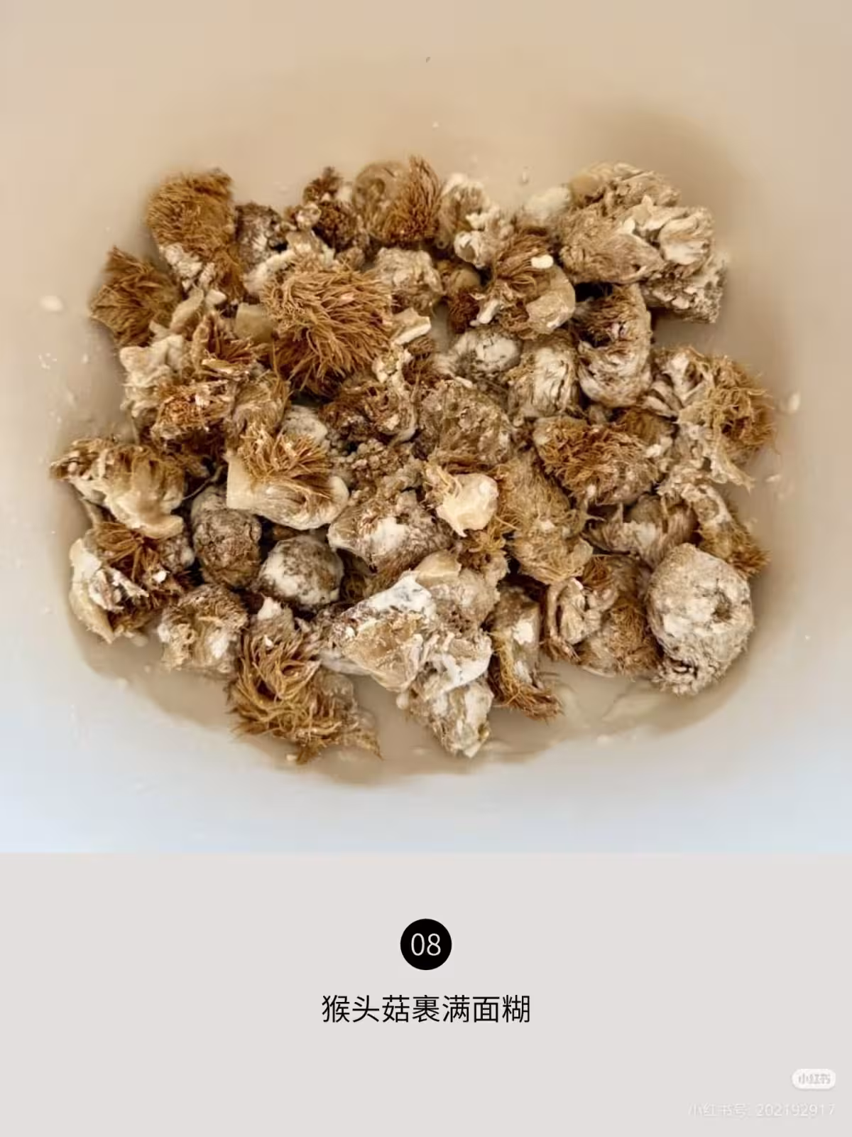 09)猴頭菇用中小火炸2-3分鐘後撈出;