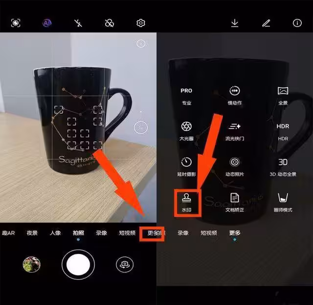 因為在相機更多設置裡面,可以給照片添加好看的水印。