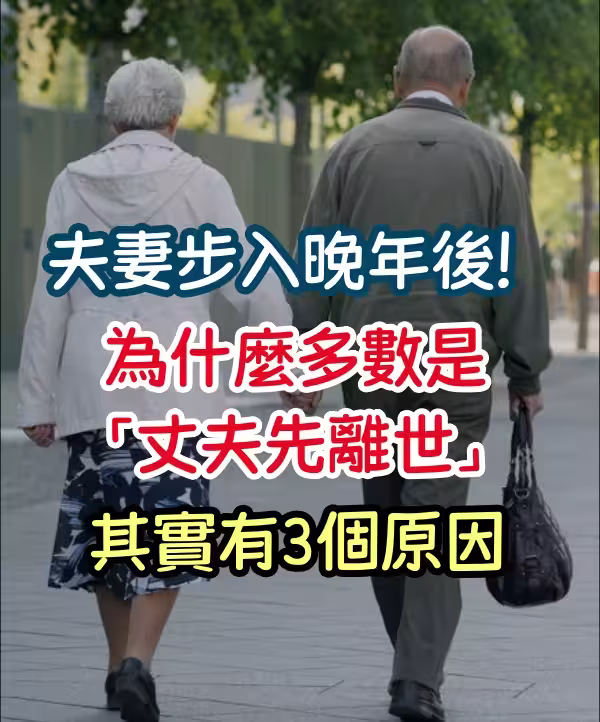 夫妻步入晚年後 為什麼多數是「丈夫先離世」 其實有3個原因