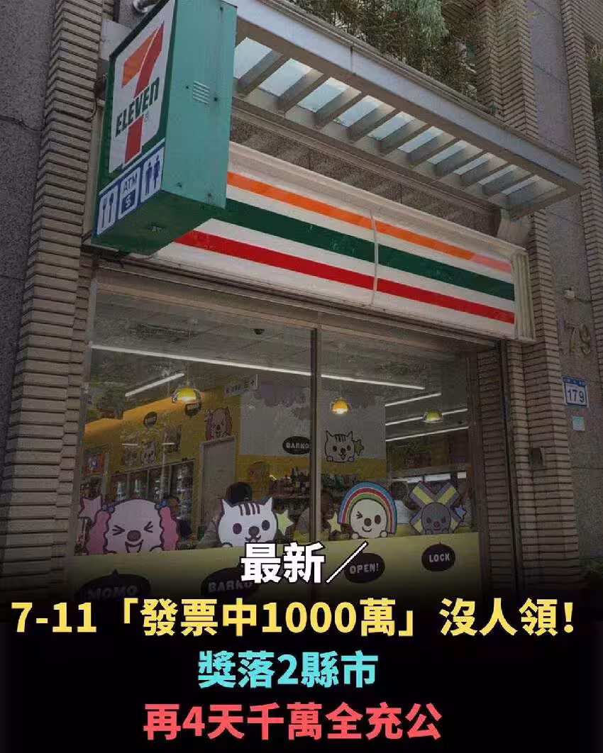最新/7-11「發票中1000萬」沒人領! 獎落2縣市,再4天千萬全充公