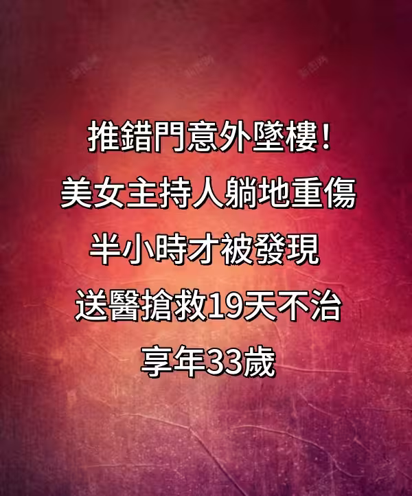 推錯門意外墜樓!!! 美女主持人「躺地重傷半小時」才被發現 送醫「搶救19天不治」享年33歲