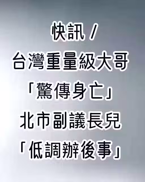 快訊/台灣重量級大哥「驚傳身亡」!北市副議長兒「低調辦後事...」