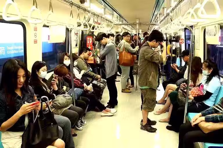 「滴——大世界站到了」廣播聲震得頂燈閃爍,人潮湧向車門。 男人猛地收緊臂彎,用背部頂住推擠的人流。