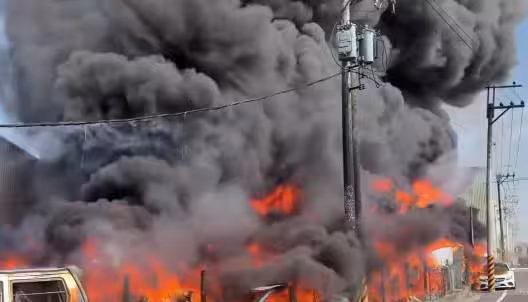 火警當下,不僅主體建築全面燃燒,火焰還波及鄰近廠房,現場一度不時傳出爆裂聲響,增加搶救難度。