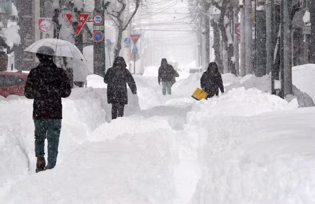 綜合日媒報導,北海道新千歲機場因暴風雪影響,17架航班被迫取消,青森的積雪深度更是達到66公分,東京都也飄起雪來,車輛的擋風玻璃、道路都開始結冰,日本氣象廳提醒,這波寒流影響範圍從北日本延伸到東日本,堪稱入冬最強冷空氣,伴隨強風吹拂,體感溫度可能會更低。