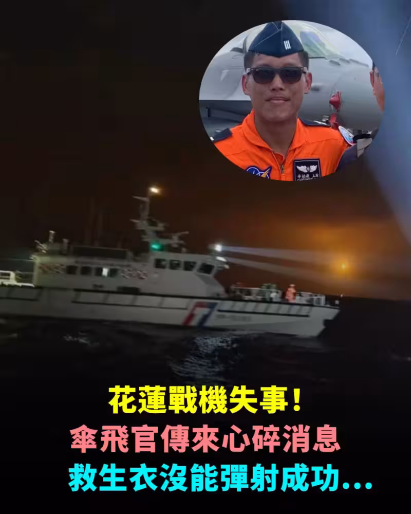 花蓮戰機失事!跳傘飛官傳來心碎消息,救生衣沒能彈射成功...