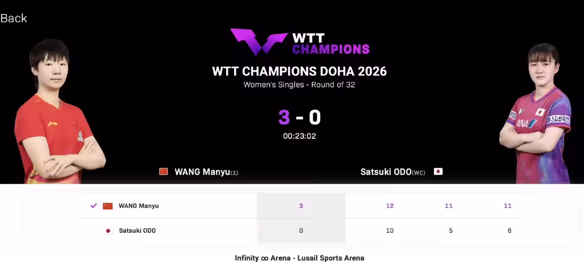 1月8日,WTT多哈冠軍賽女單首輪上演焦點對決,國乒名將王曼昱狀態神勇,以3-0(12-10、11-5、11-6)橫掃日本新生代反手強者大藤沙月,順利晉級16強,延續了2025年至今對日本選手的單打全勝紀錄,將「抗日36連勝」的輝煌延續。