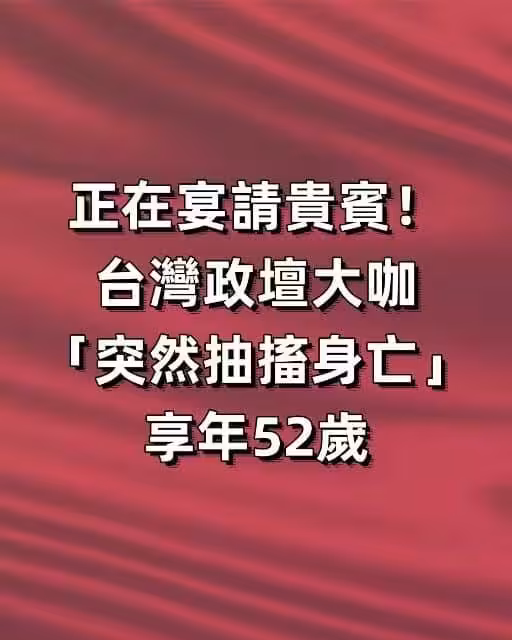 正在宴請貴賓!!! 台灣政壇大咖 「突然抽搐身亡」享年52歲!