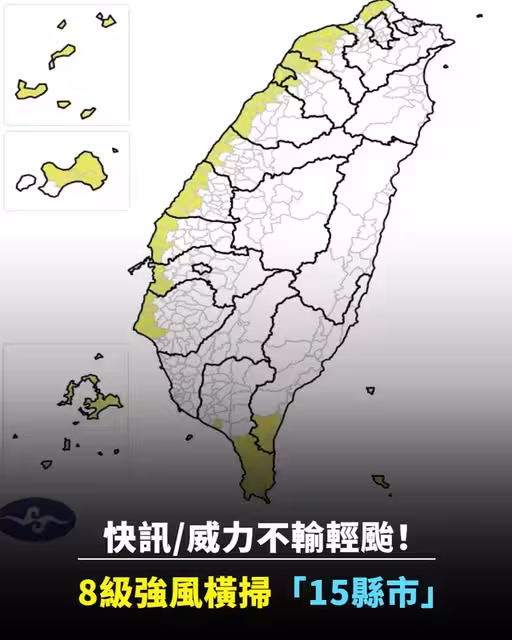 快訊/威力不輸輕台!8級強風橫掃「15縣市」
