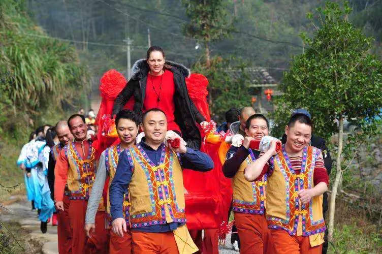 身著紅色嫁衣的奇娜,在古老的客家土樓前,完成了具有中國特色的婚禮儀式。