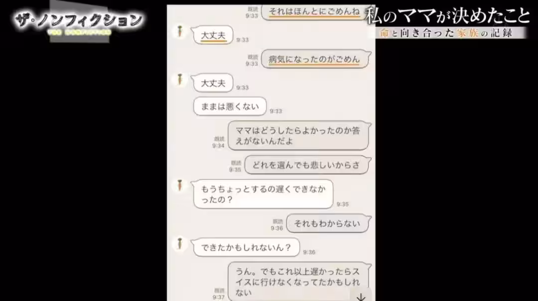 在得到家人的理解後,真由美和丈夫訂了飛往瑞士的機票。離別的時候終於要到了。女兒在機場跟即將前往瑞士的媽媽道別,兩人雖然對媽媽的離開感覺到非常悲傷,不捨得就這樣離別,但是為了讓媽媽儘可能走得洒脫,兩人儘可能表現得開朗一點。