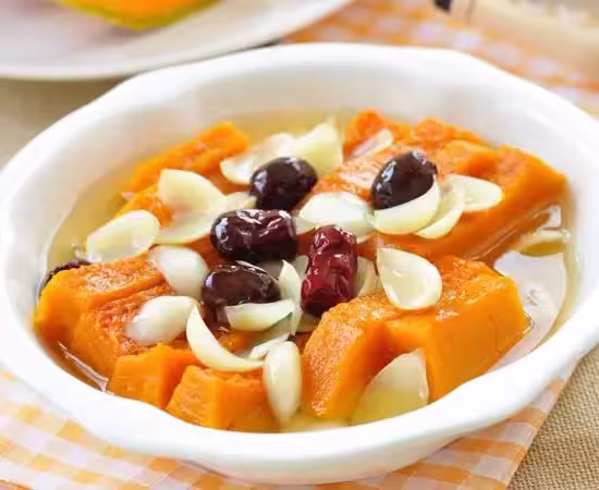 南瓜性溫味甘,能補中益氣,搭配潤肺的百合,蒸製後保留了食材的原汁原味,甜糯不膩,特別適合作為餐後甜點。食材:南瓜 1 塊、百合干 10 克、紅棗、冰糖少許。做法:百合干提前泡發,南瓜去皮切厚片,擺放在盤中,鋪上泡好的百合,撒少許紅棗、冰糖,放入蒸鍋中蒸 15 分鐘,直到南瓜軟爛、百合熟透即可。口感甜糯綿密,帶著百合的清香,既能潤肺,又能提供能量,小朋友也喜歡吃。