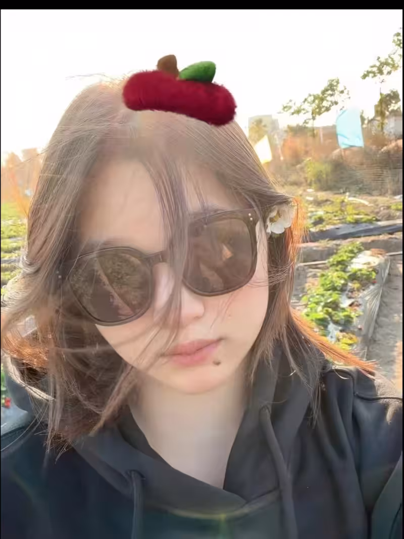 照片中,全紅嬋身穿黑色衛衣,戴著墨鏡,手提紅色籃子,行走在草莓地里。鏡頭裡有綠油油的菜地、火光正旺的土窯雞,還有日落時分的鄉村景色。她始終戴著墨鏡,卻依舊能讓人感受到那份久違的放鬆與輕鬆。