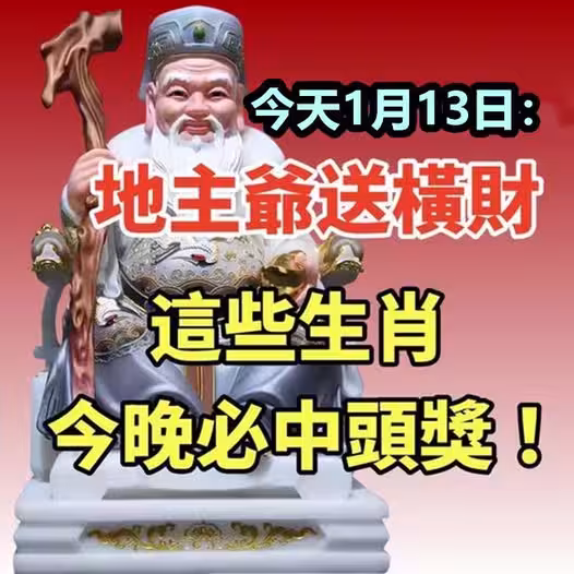 今天1月13日:地主爺送橫財, 這些生肖今晚必中頭獎!!