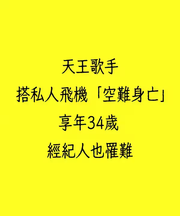 快訊/天王歌手搭私人飛機「空難身亡」享年34歲 經紀人也罹難