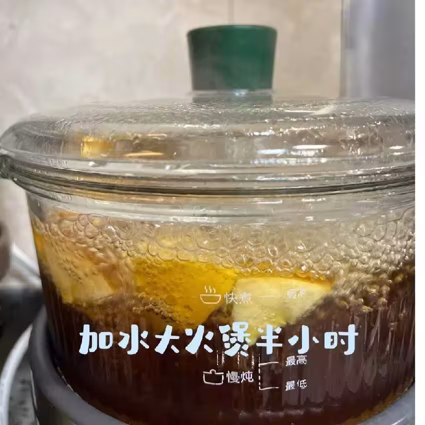 煮湯: 將陳皮、羅漢果和蘋果一同放入鍋中,加入適量清水(約800毫升至1000毫升);開大火煮沸後,轉小火煮15-20分鐘。