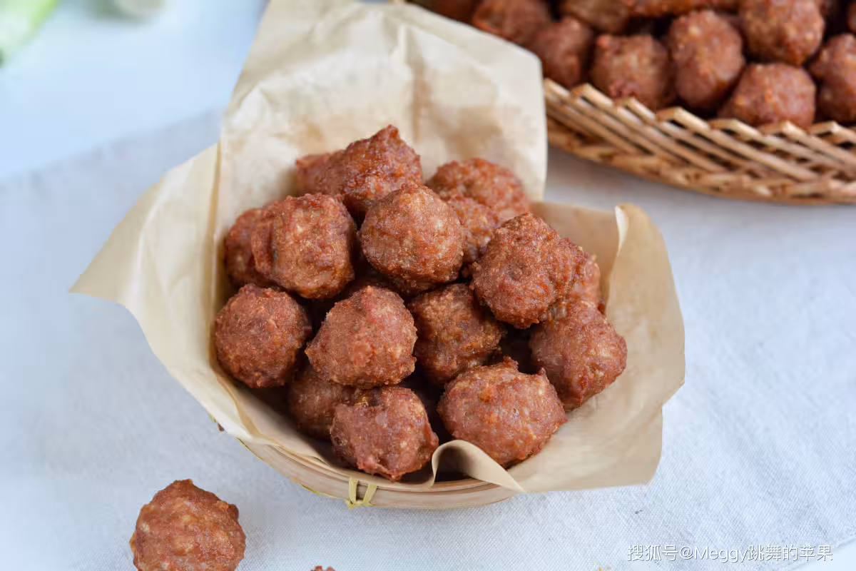 干炸丸子這麼做咋吃都不膩,我家都會炸幾盆,好吃又容易做