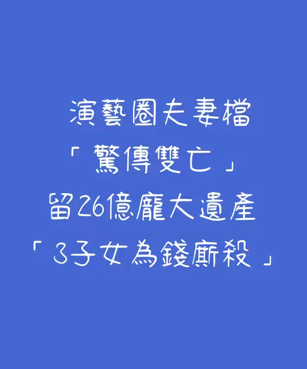 演藝圈夫妻檔「驚傳雙亡」留26億龐大遺產「3子女為錢廝殺」!