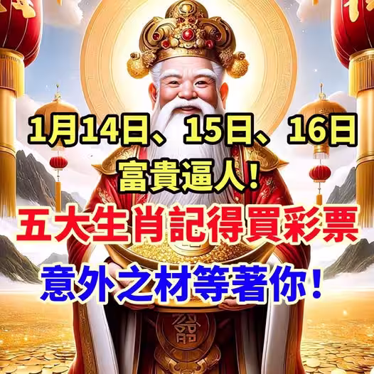 1月14日、15日、16日富貴逼人!五大生肖記得買彩票,意外之財等著你!