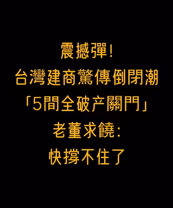震撼彈!台灣建商驚傳倒閉潮「5間全破產關門」老董求饒:快撐不住了