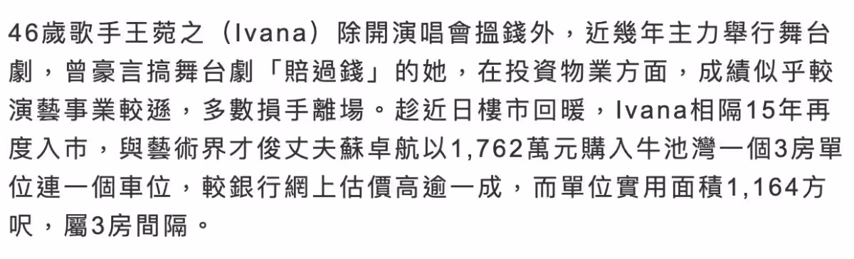 46歲香港歌手在租住房樓上買房,花了1760萬,住了11年月租3.7萬