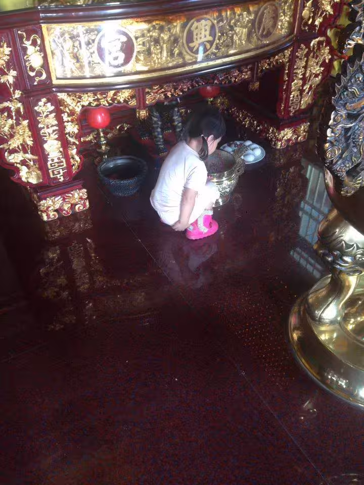 在台灣,大部分民眾都有自己的宗教信仰,並且一般都會認為,必須對神明心存敬意,尤其踏入寺廟或拜拜時,更應該循規蹈矩,不得隨便開玩笑、做出無理的行為。不過台南卻有一位媽媽透露,日前自己帶著3歲的女兒到宮廟裡拜拜,結果拜到虎爺公時,女兒竟突然在金爐前蹲了下來,還露出一臉做錯事的模樣,讓她心裡一緊,當場腿軟跪下來謝罪,直呼:「不知者無罪!」