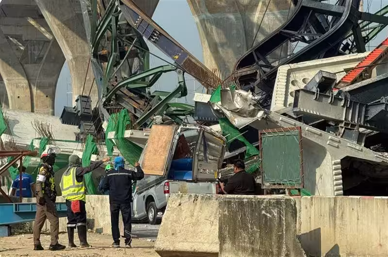 報導指,起重機是用於上方高架快速道路橋樑施工的機具。