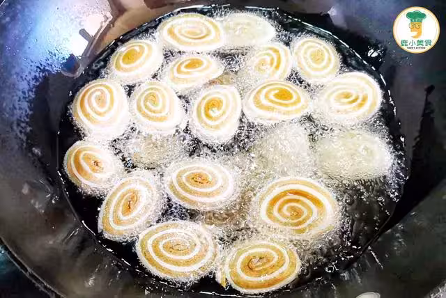 鍋中倒油,燒熱至7~8成油溫,改中小火,把貓耳朵逐片放進油鍋中開始油炸,下油鍋後,起初不要攪動,讓貓耳朵油炸定型鞏固,自行漂浮起來了,再用筷子進行撥動翻面。