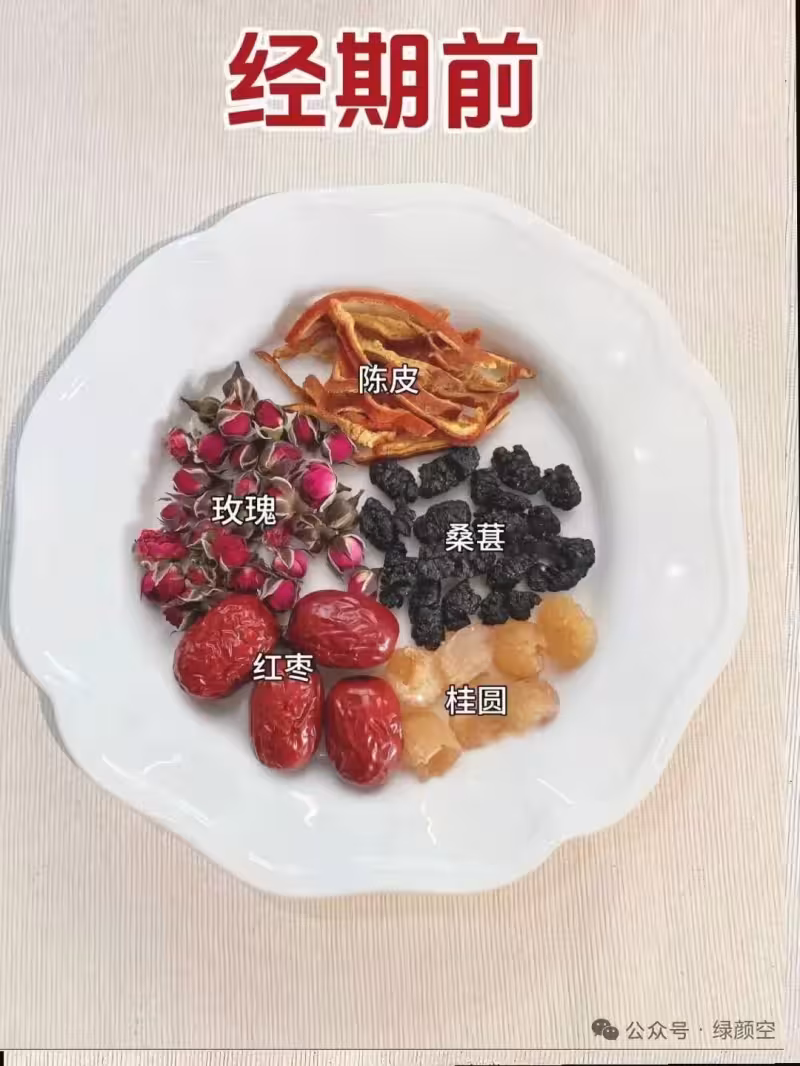 ✅ 食材:玫瑰5朵、陳皮3克、桑葚干10顆、紅棗4顆、桂圓6顆