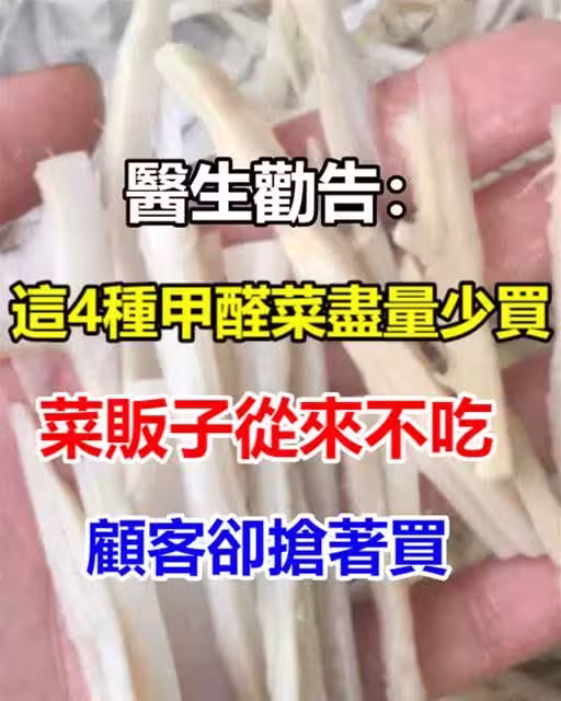 以下三種在市場上常見的「甲醛菜」,尤其在春季更需警惕,醫生提醒消費者儘量避免購買,菜販子自己都不吃,不是沒有道理。