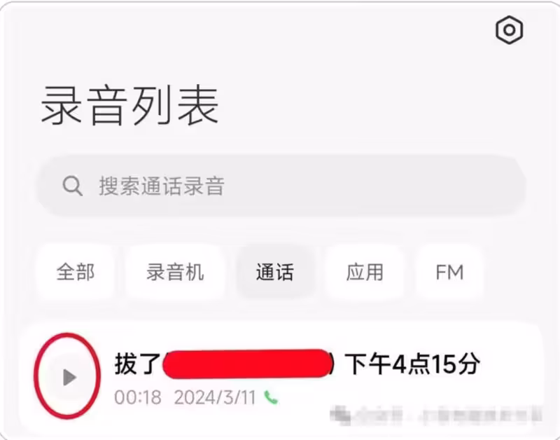 錄音文件存儲在手機的錄音機應用中。進入錄音機後,我們可以看到一個「錄音列表」,其中包含「通話」錄音。點擊「通話」後,就能看到所有的通話錄音,包括具體時間和通話時長。
