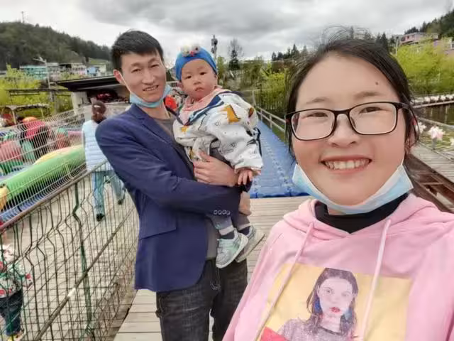 廿斌一家三口最後一次合影。 2月17日中午, 玲子發現丈夫的呼吸有些急促, 急忙打救護車將他 送到利川市人民醫院。