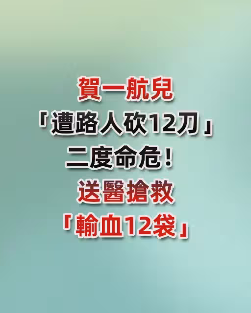 賀一航兒爆「遭路人砍12刀」二度命危!!! 送醫搶救「輸血12袋」