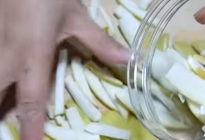 只需將柚子皮剝下並切細成絲狀,然後將其放入任何閒置的容器中,加入適量的水進行浸泡。