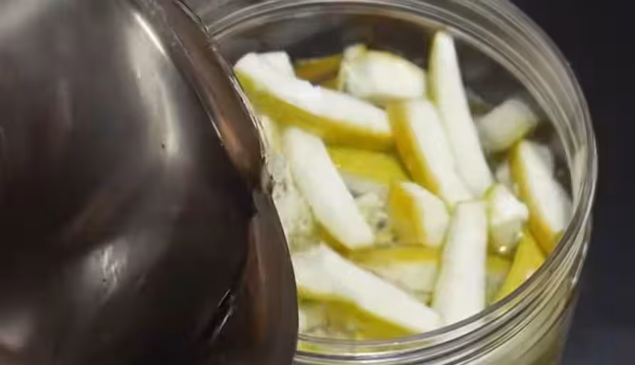 接下來,把裝有柚子皮絲和水的容器密封好,放入冰箱靜置七天。在這段時間裡,柚子皮中的有效成分會慢慢溶解到水中,形成一種強大的清潔劑。