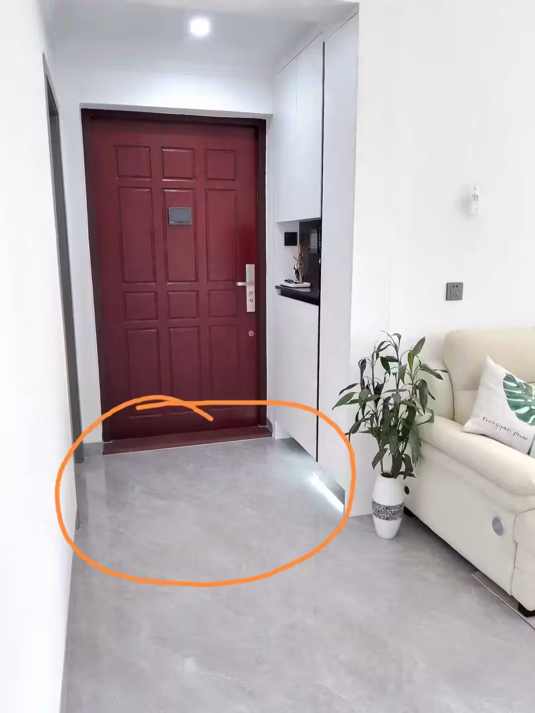 這種設計就是玄關位置,要比室內位置下沉10公分左右。