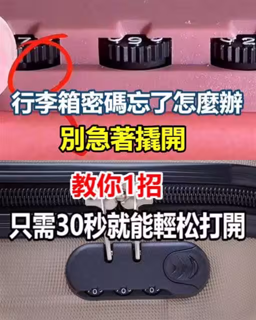 行李箱密碼忘了怎麼辦?!別急著撬開,教你1招,只需30秒就能輕鬆打開