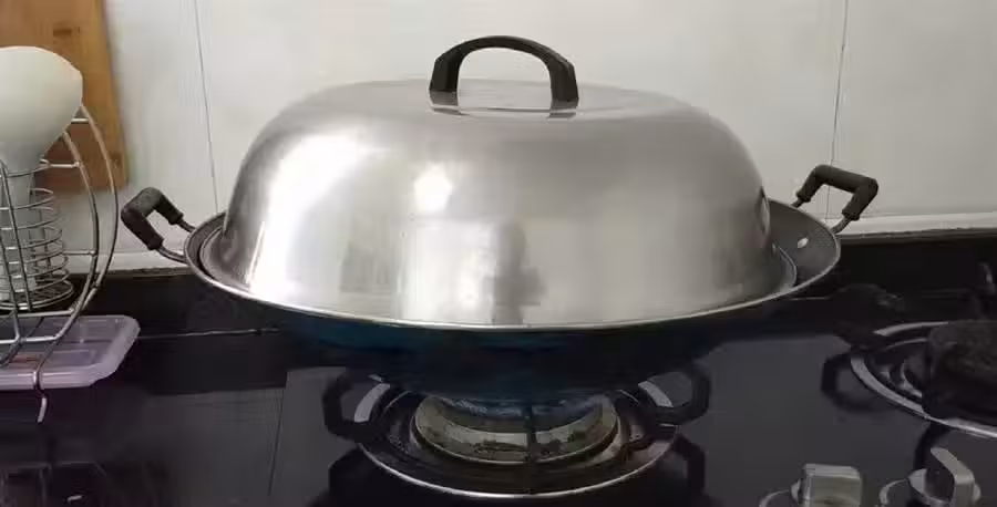 第十一步:鍋中燒開水,把做好的筍粄放下去,蓋上鍋蓋,蒸15分鐘