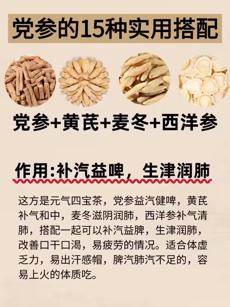 ⓬8克黨參+8克黃芪+8克麥冬+3克西洋參